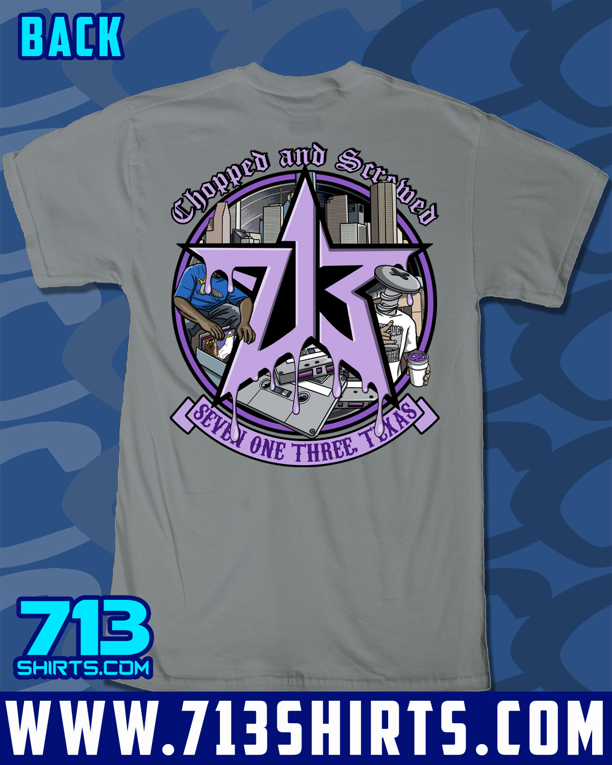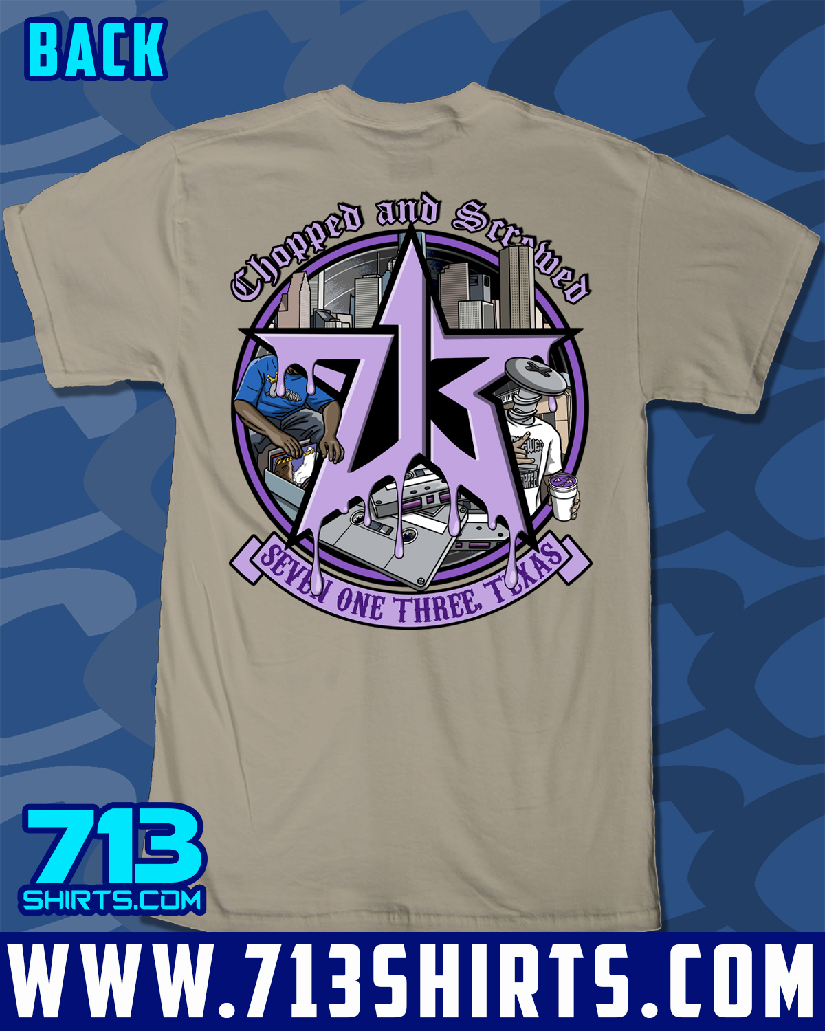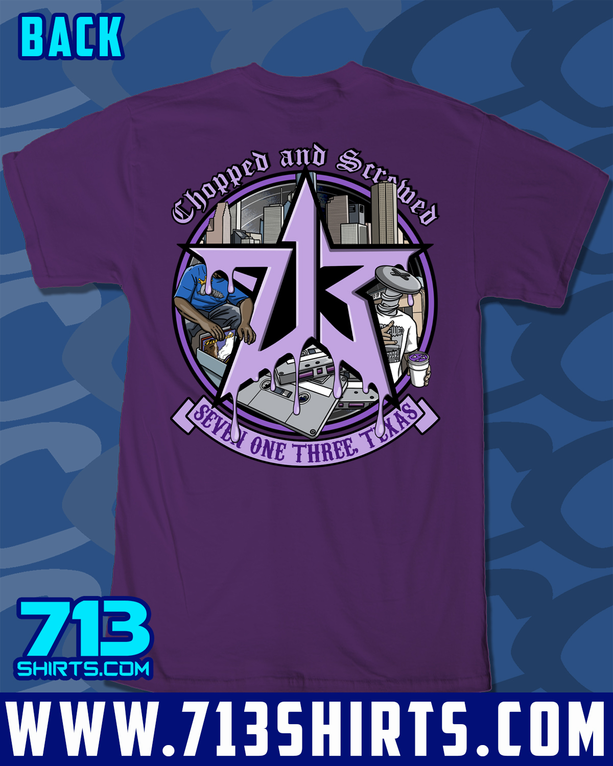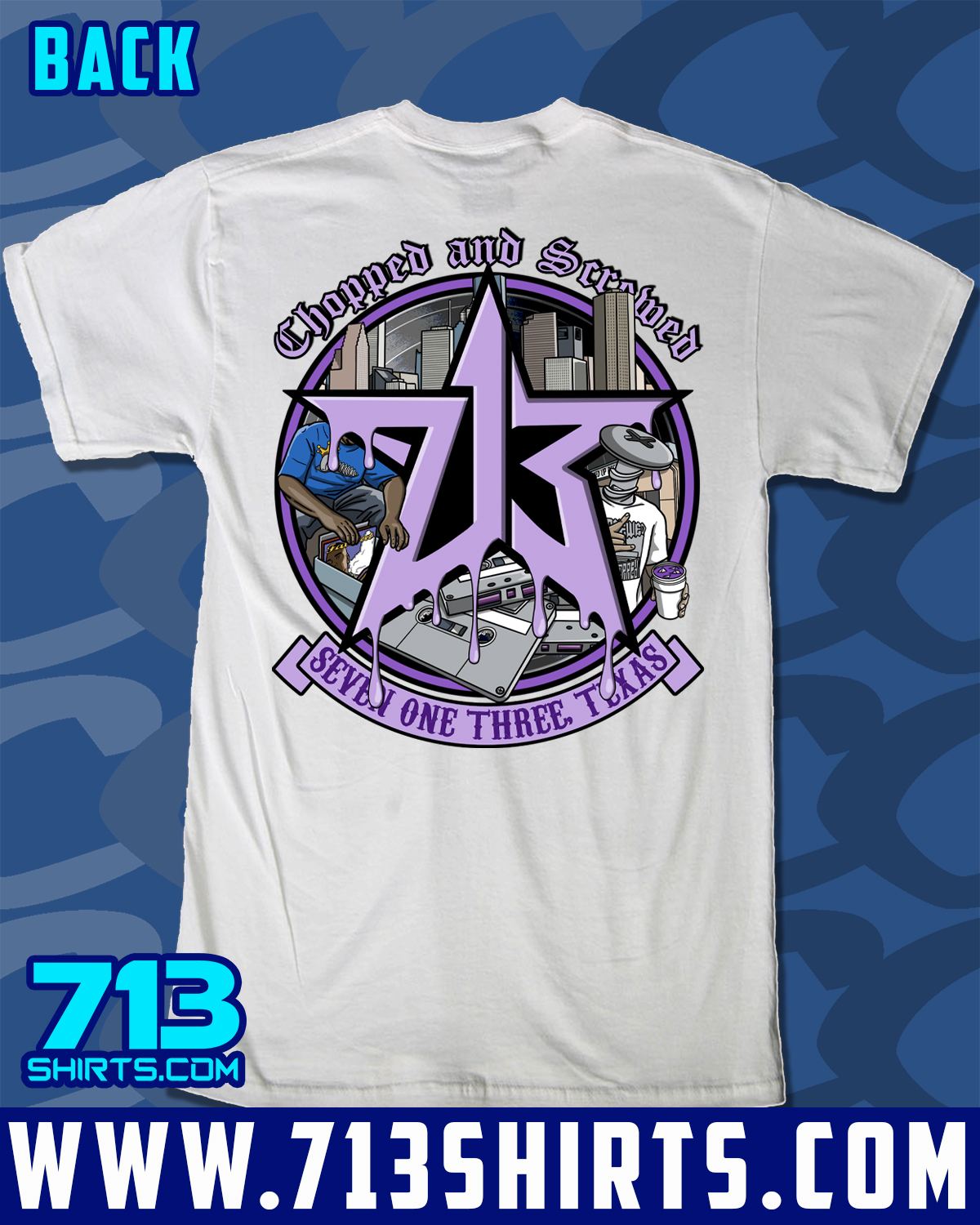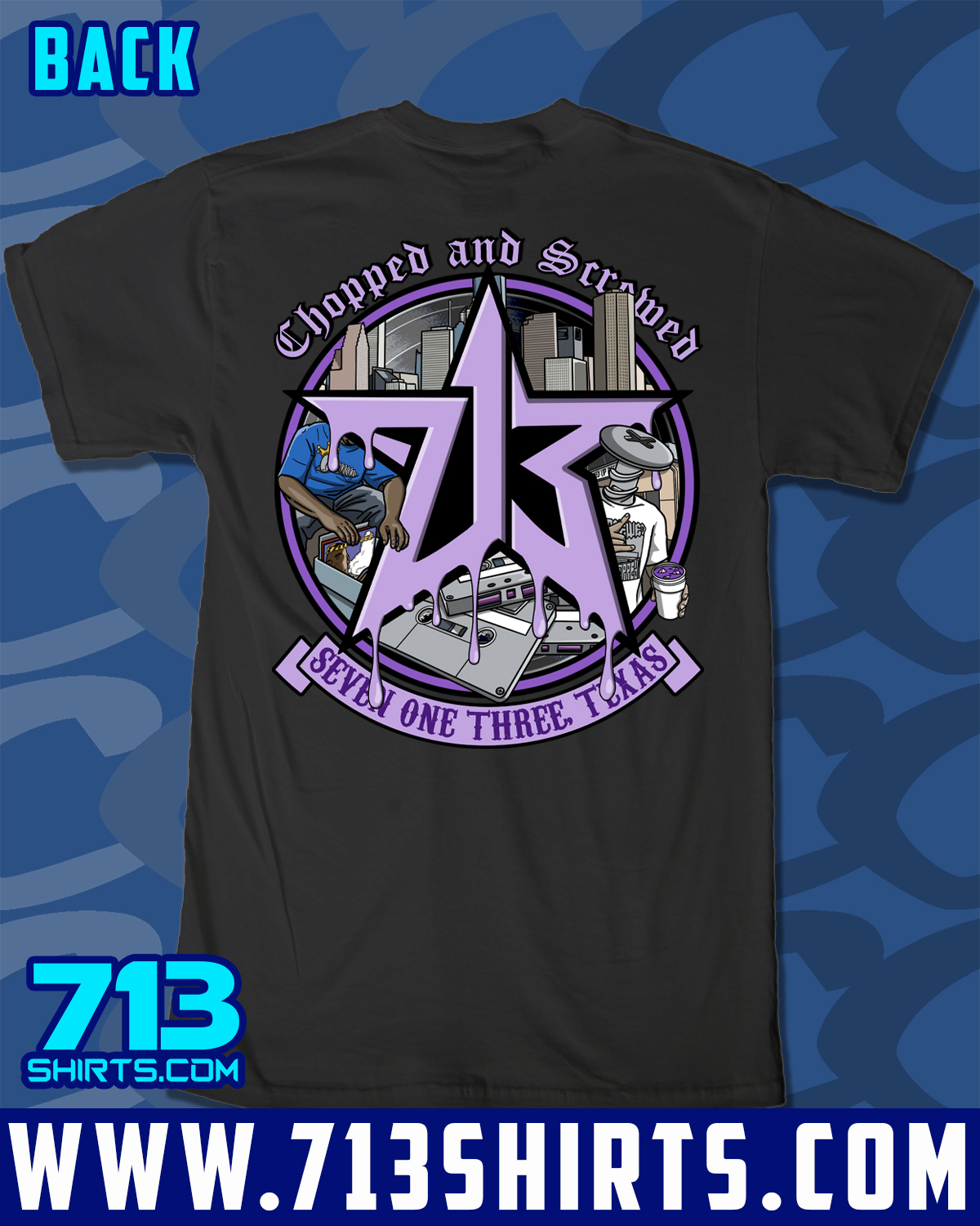 Represent for the 713 with this design from 713 Shirts. Front and Back Print.