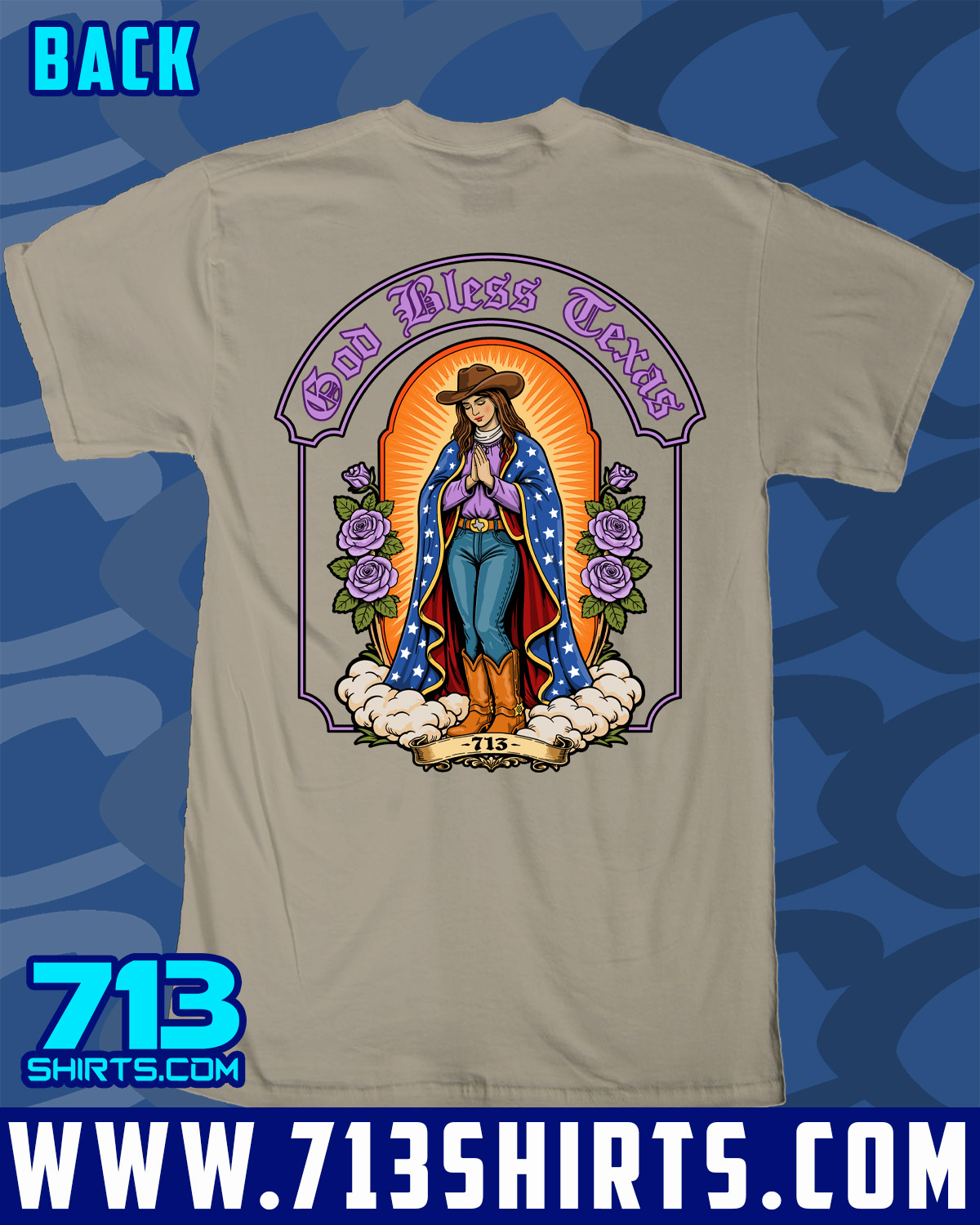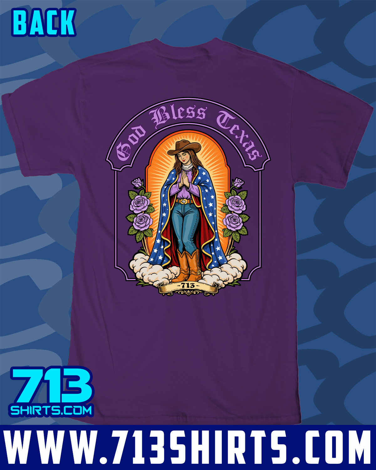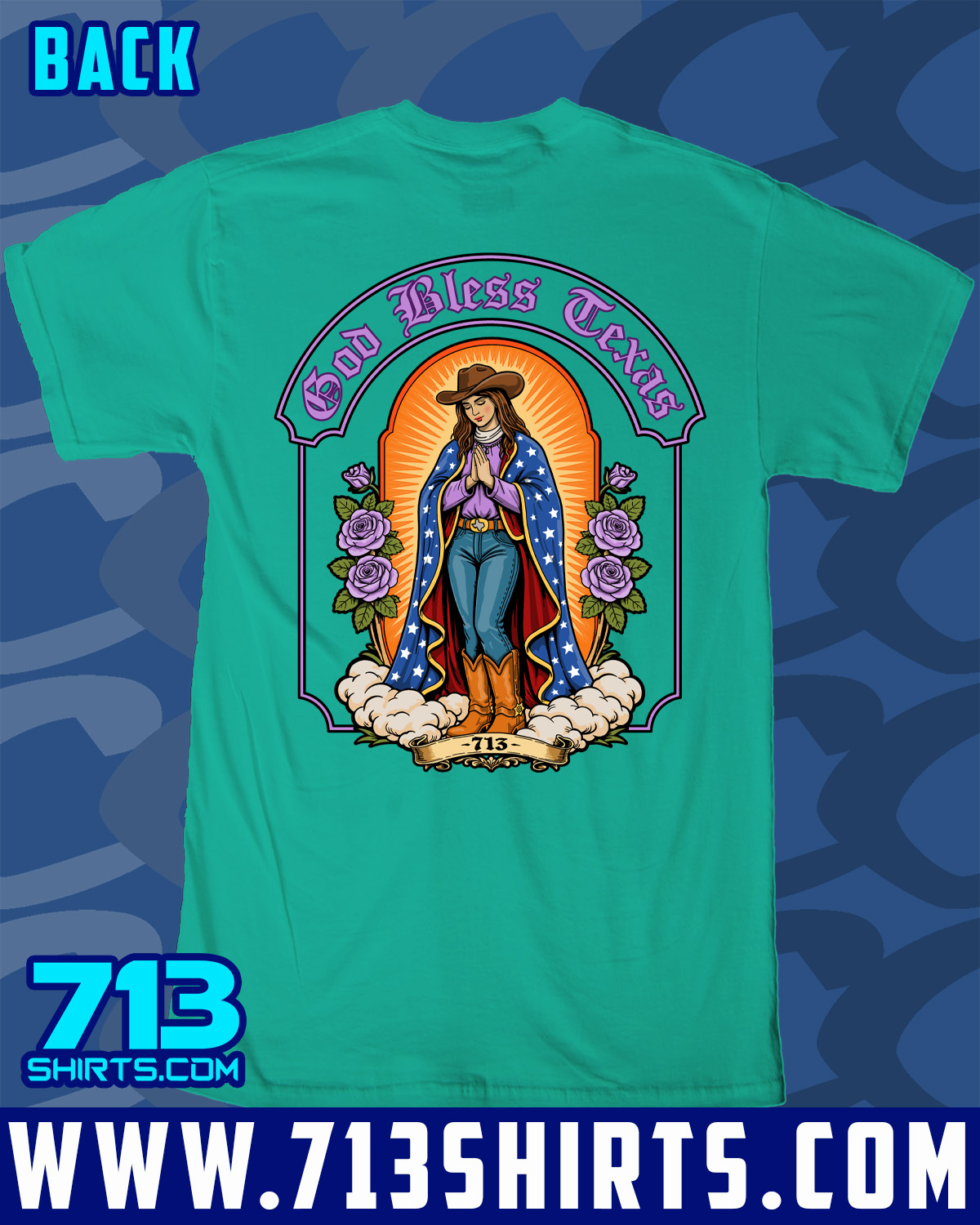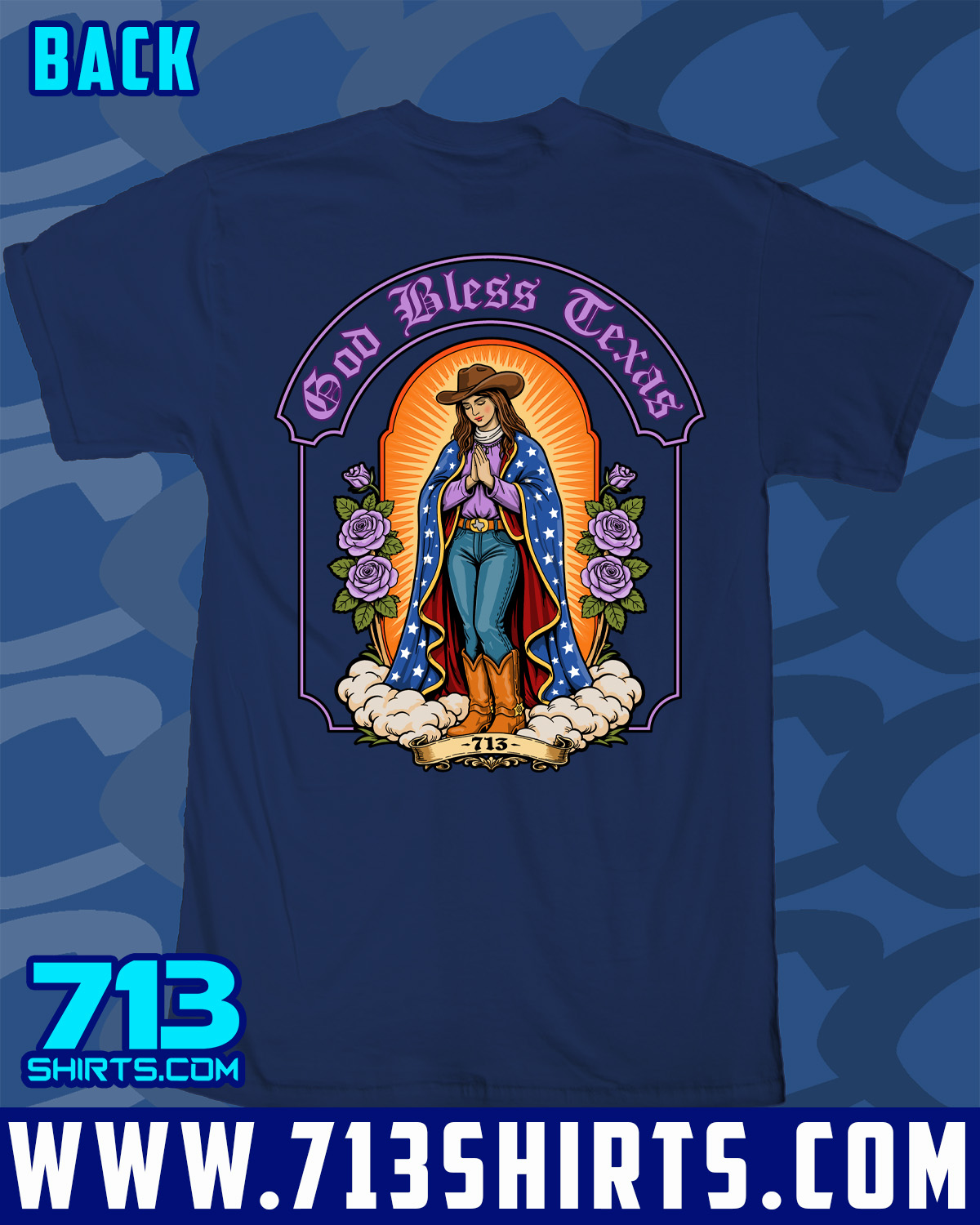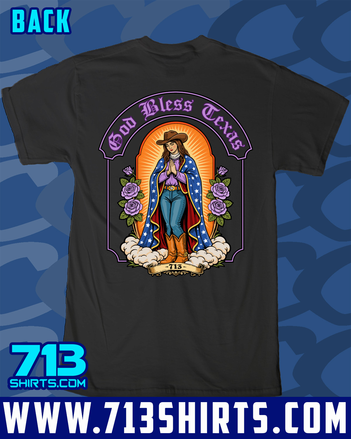 Represent all things Texas with this design from 713 Shirts. Front and Back Print.