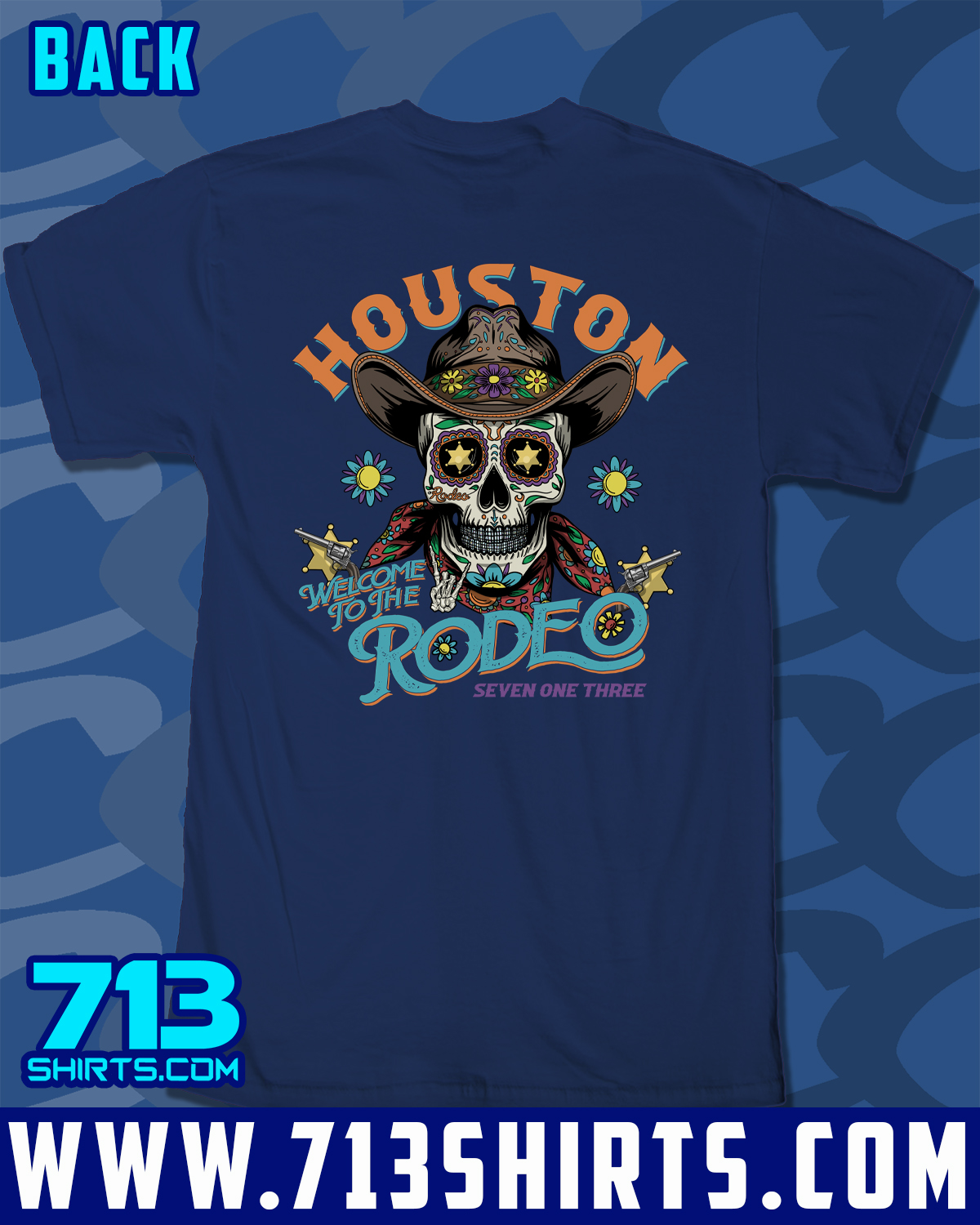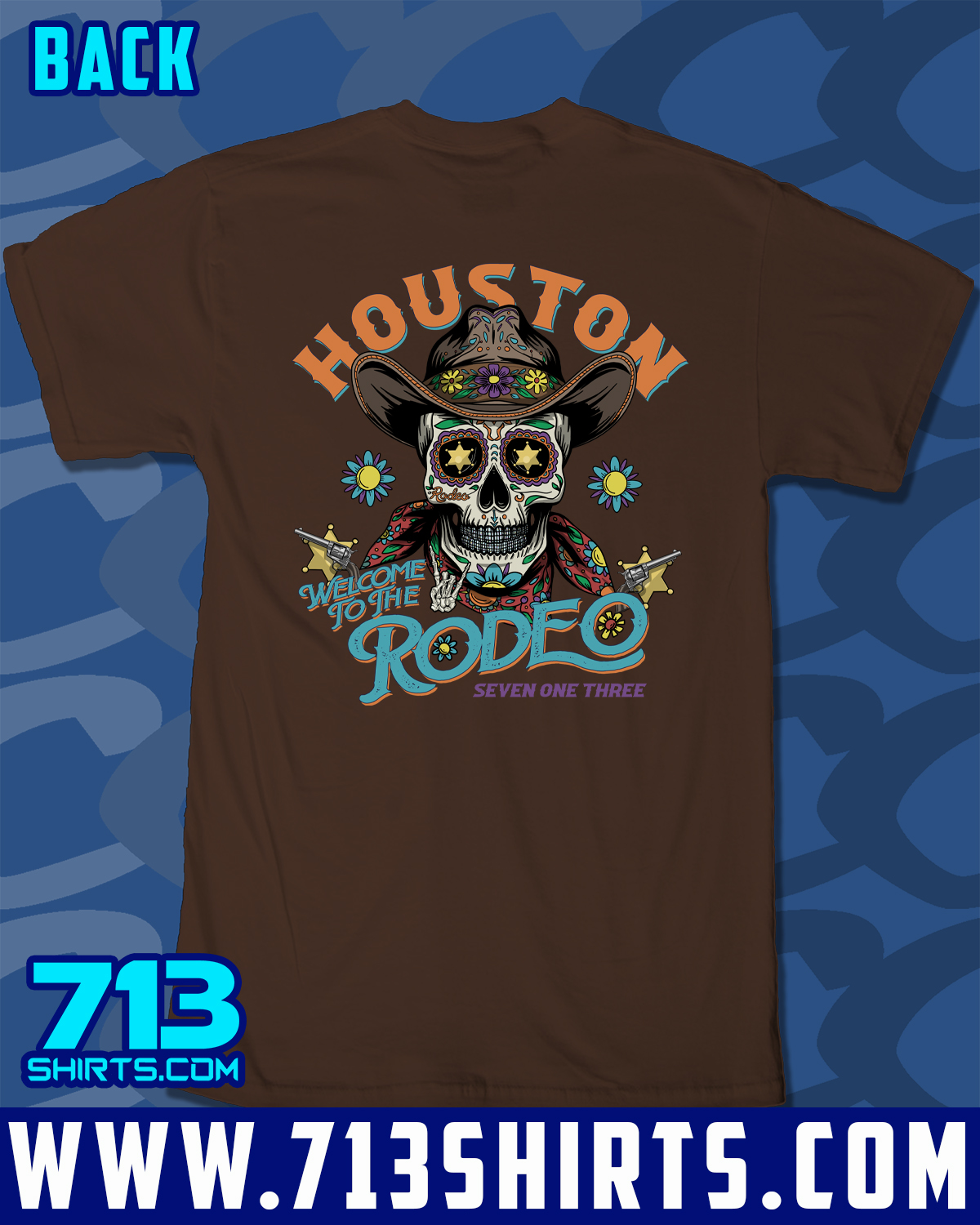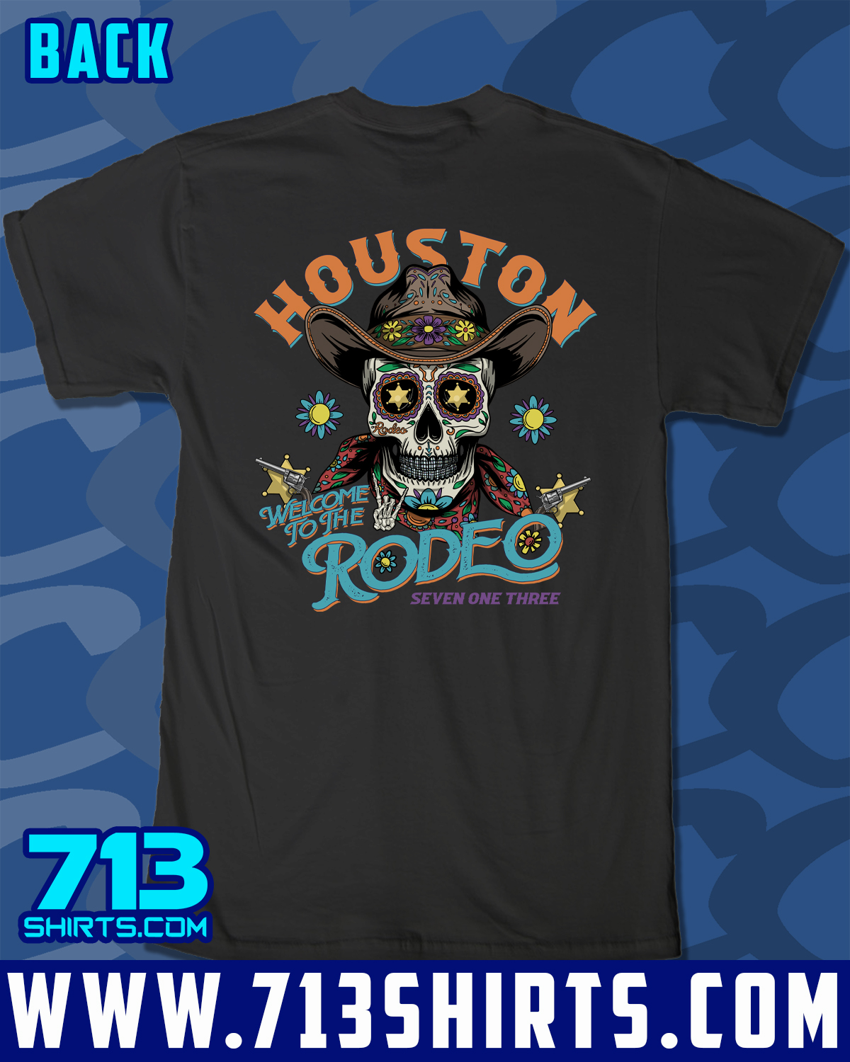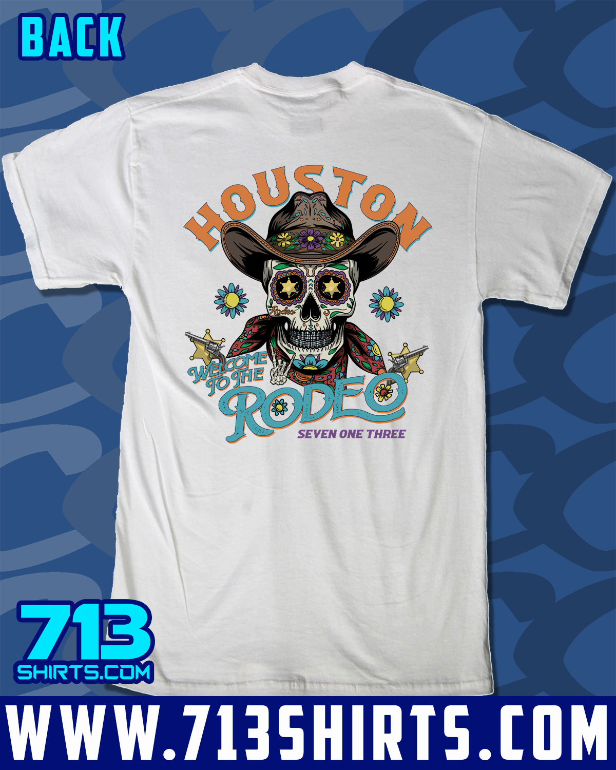 Get ready to Rodeo in this design from 713 Shirts. Front and Back Print.